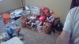sunday one more carload, i think i'm done. today i got a tent and 6 unlabeled bottles of pinot noir, 10 cans of tuna, more shoes books food tshirts etc.
