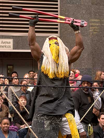 This guy totally has the Bolt Cutter in a Hammer hold full nelson and is about to do a Summer Slam on its ass. I think he will beat the Bolt Cutter by the end of the 15 round caged grudge match at Wrestlemania XXI