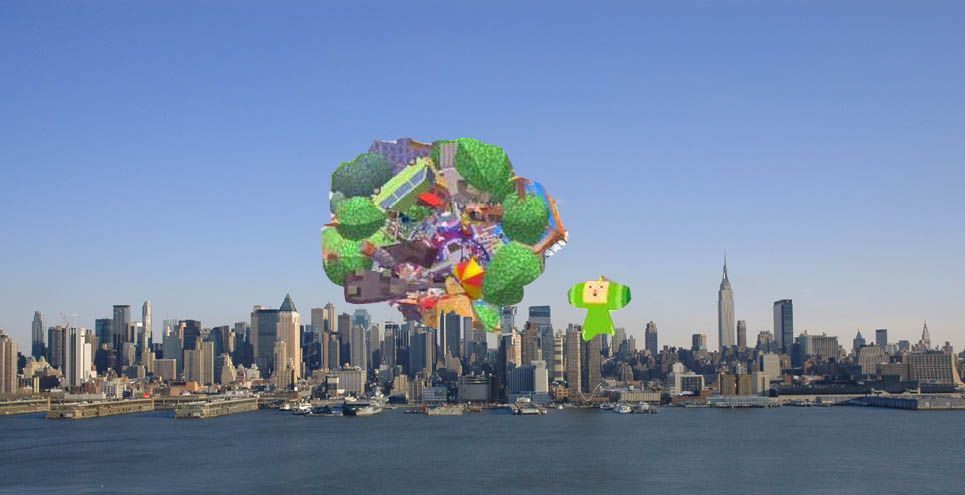 Made this many years ago at the height of WTC guy photoshopping mania, when I was also playing around with my 3D Tobor model. As you can see, my Photoshop skills have improved somewhat...