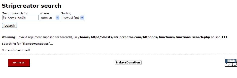 When I try to search for a comic and it throws up no results it gives me the following error, but when it has results all is fine.