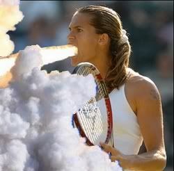 It was one of those things where we all knew it would come down to tennis balls shooting out of the guy's ass vs. a tennis racket going up the guy's ass. We were powerless to diverge from this course of events or to determine the outcome. All we could do was post the pictures destiny demanded of us and wait.
